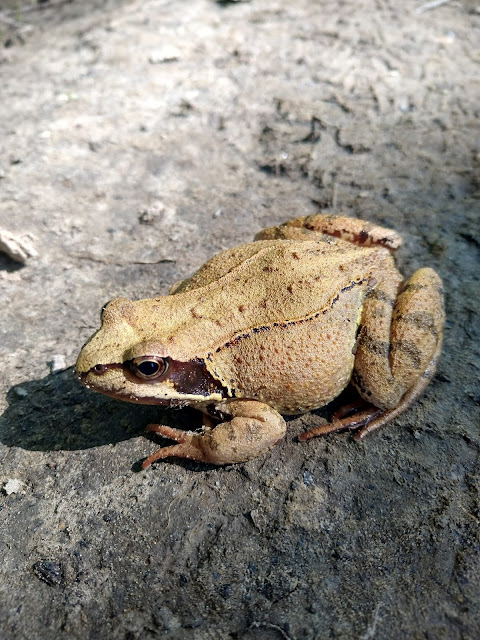 Uciekamy przed mocno operującym słońcem z otwartej przestrzeni pól do lasu. Natrafiamy tam na bardzo elegancką wiatę z kominkiem, powstałą w efekcie polsko- słowackiej współpracy transgranicznej. Na nią oraz na wyjątkowo fotogeniczny okaz żaby trawnej.